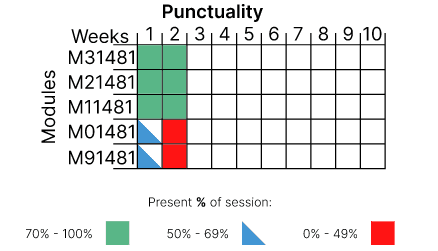 Provide session duration/punctuality → Added thresholds + punctuality legend